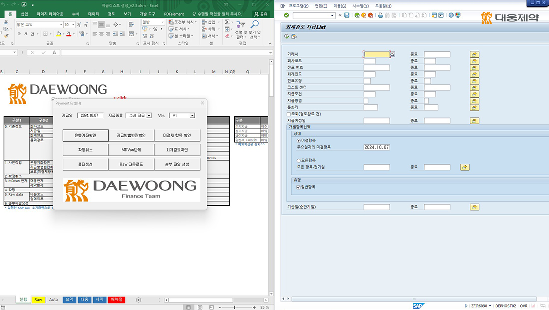 ㈜대웅 및 대웅제약의 자산 회계 업무를 맡고 있는 윤정훈입니다.